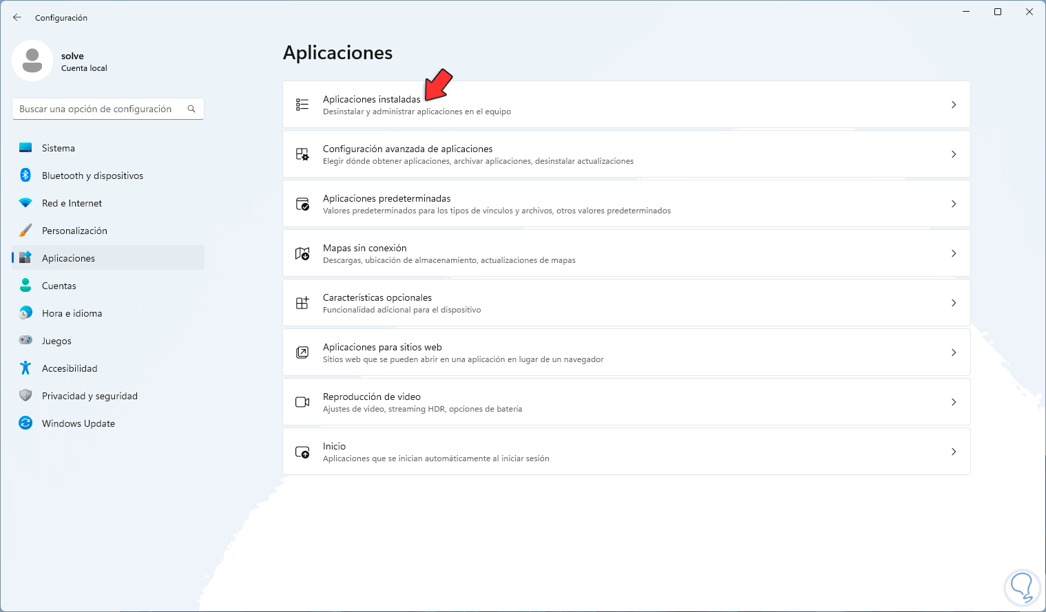 Para lograr esto vamos a "Inicio - Configuración - Aplicaciones - Aplicaciones instaladas":