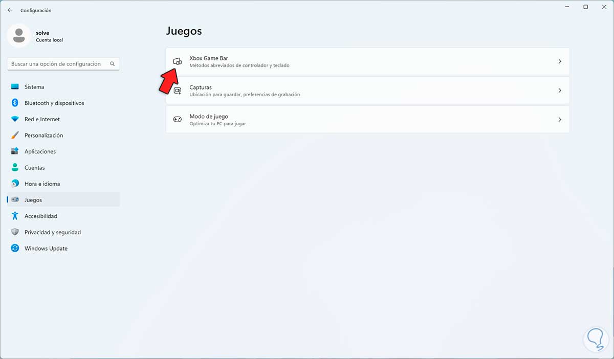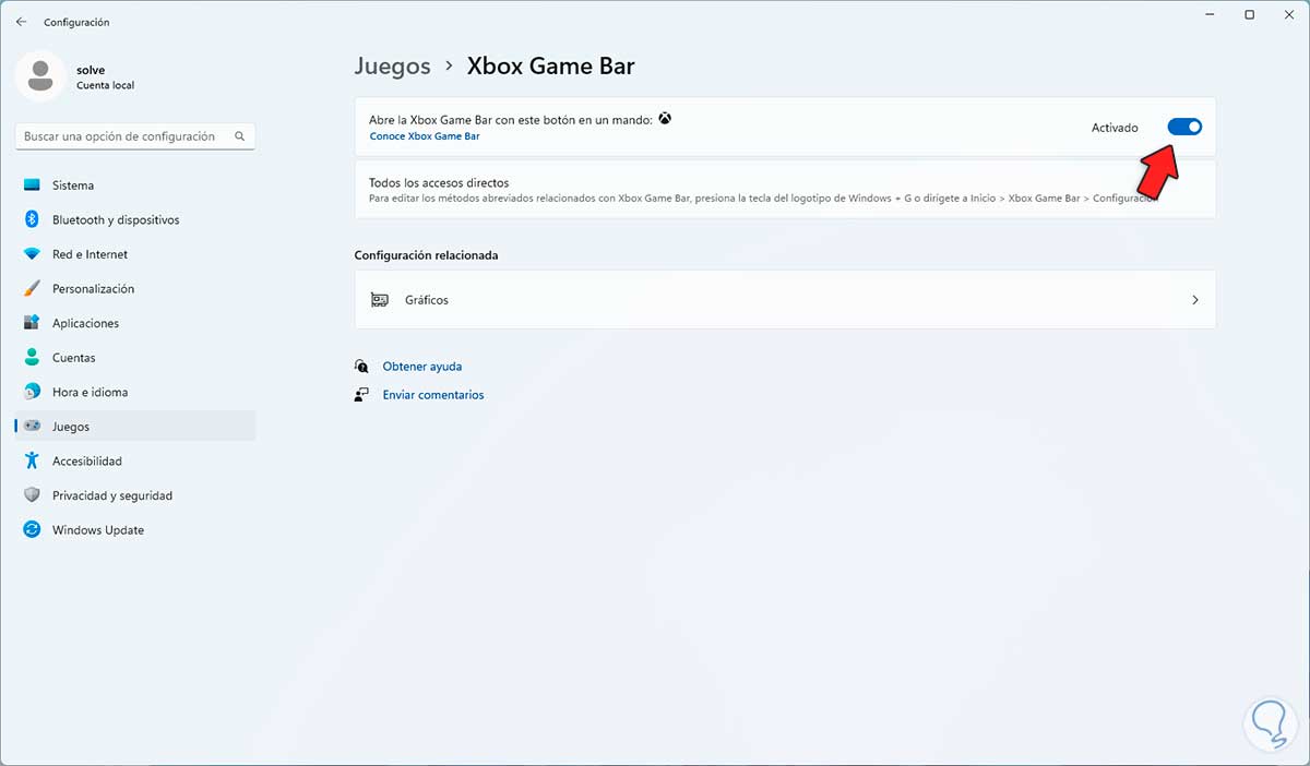 Para este método iremos a "Inicio - Configuración - Juegos - Xbox Game Bar":
