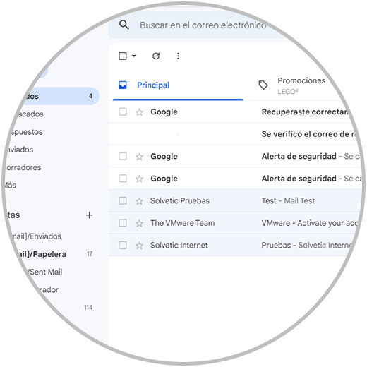 Al volver atrás estaremos en nuestra cuenta de Gmail: