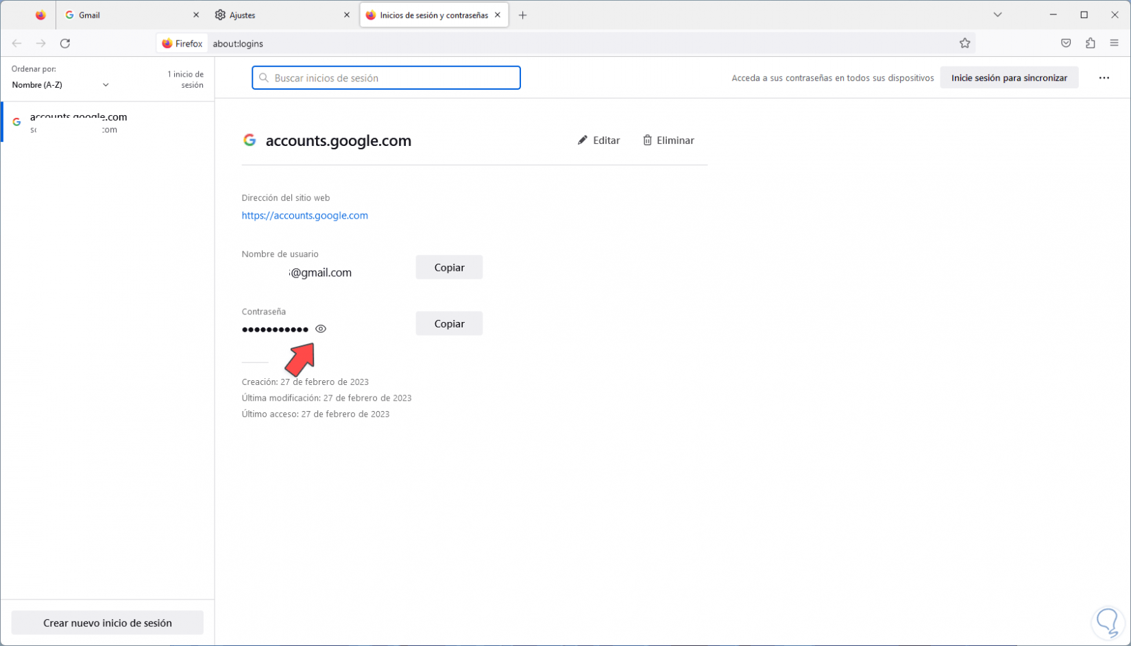 2 Cómo recuperar mi cuenta de Gmail validando contraseña guardada Firefox