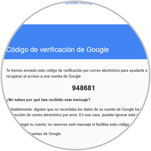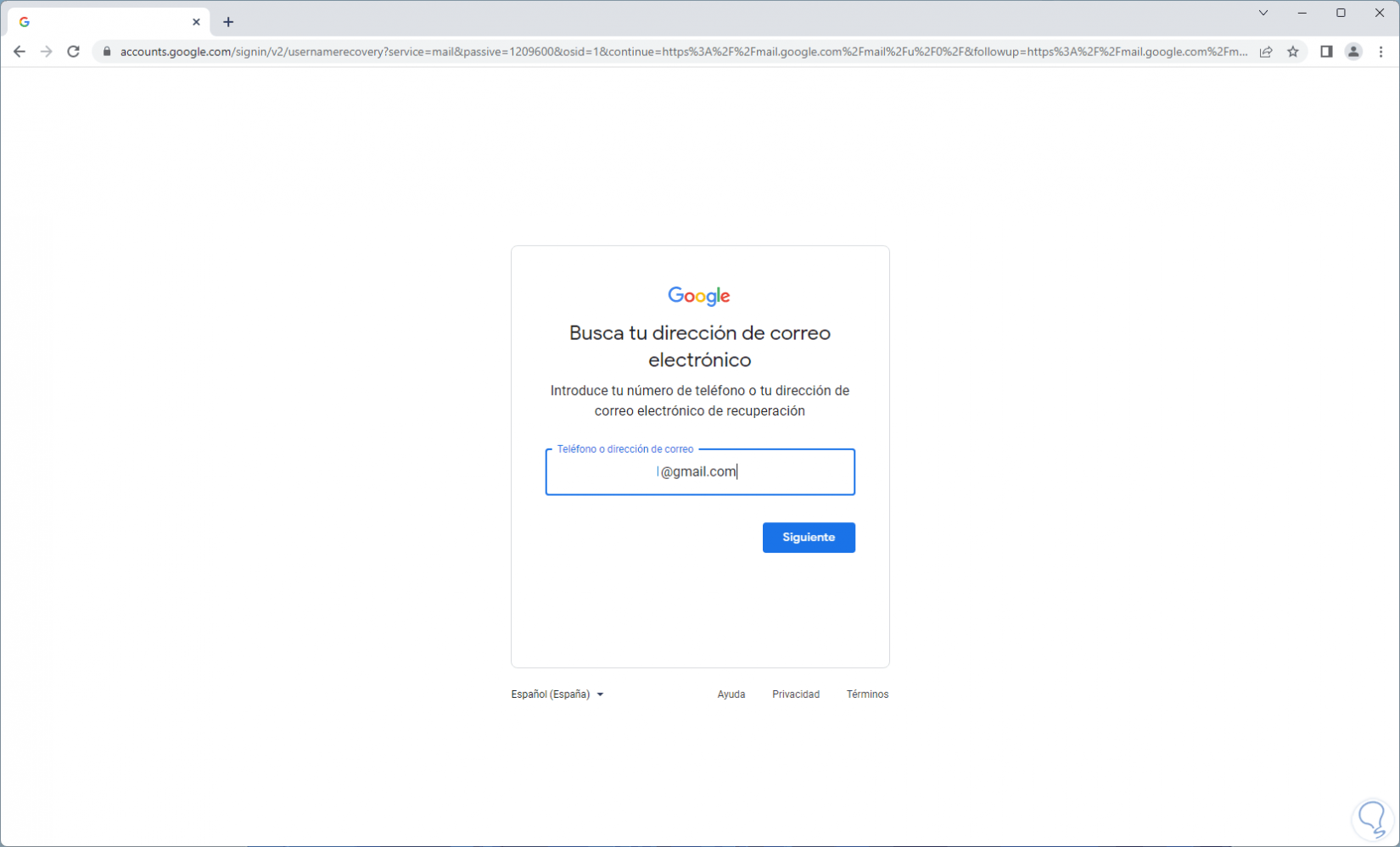 En el correo de recuperación escribiremos un código para ingresar en la cuenta, luego de esto damos clic en Siguiente y veremos esto: