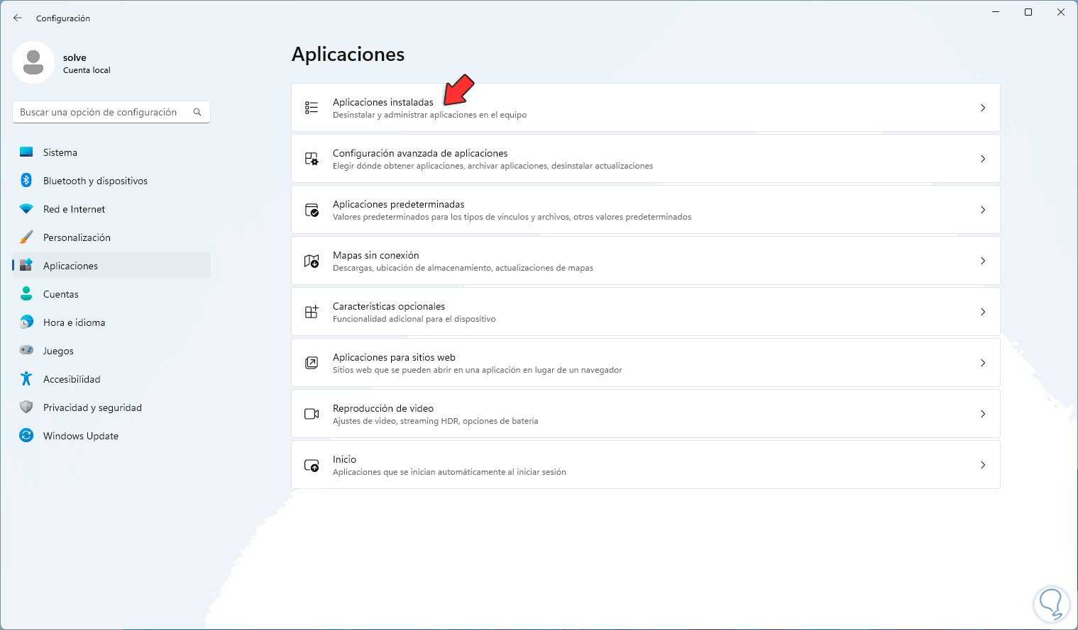 En este caso iremos a "Inicio - Configuración - Aplicaciones - Aplicaciones instaladas":