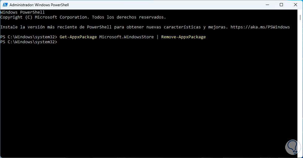 Finalmente podemos recurrir a la consola de PowerShell para ejecutar unos comandos enfocados en reinstalar la Tienda.