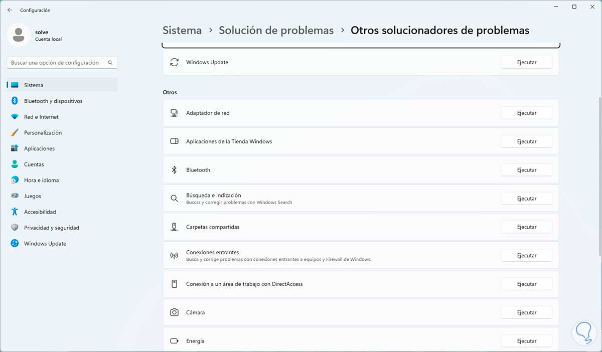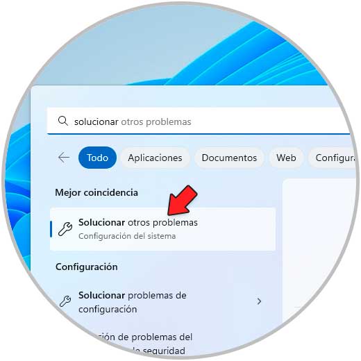 En el buscador ingresamos "solucionar" y damos clic en "Solucionar otros problemas":