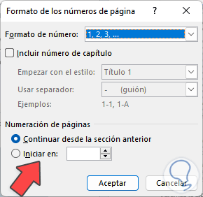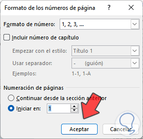 Aplicamos los cambios y ahora la numeración iniciará en la segunda página de Word:
