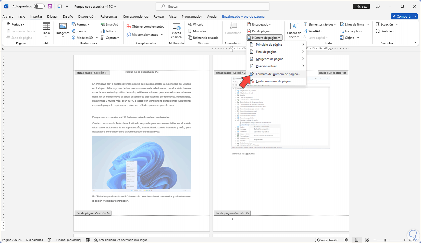 Así de sencillo es iniciar la numeración en la segunda hoja en Word.