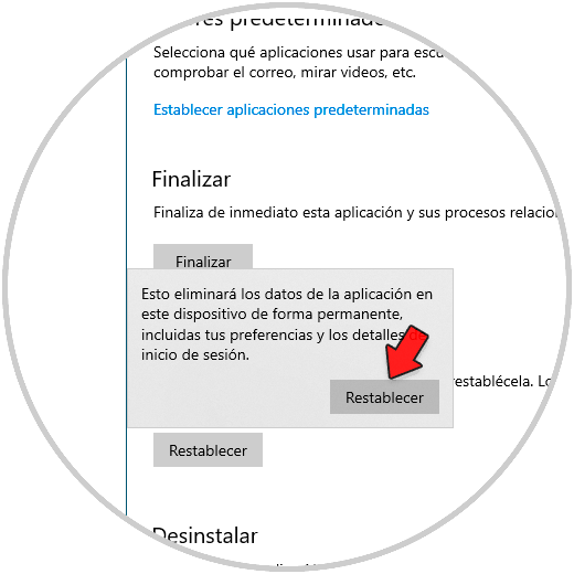 Damos clic en "Restablecer" y debemos confirmar la acción: