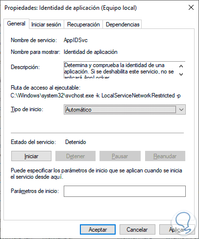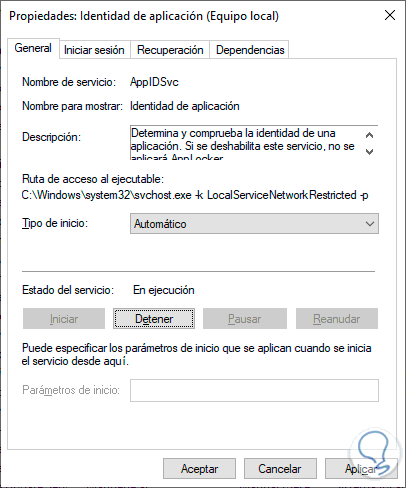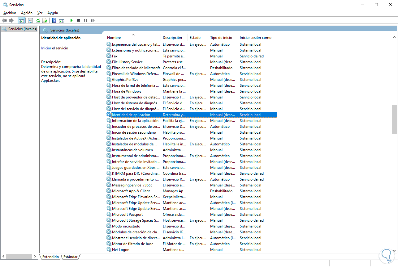 Existen servicios específicos que pueden afectar la ejecución de la aplicación, uno de estos servicios es el servicio Identidad de aplicación el cual analiza y comprueba la identidad de una aplicación a ejecutar en caso de que no esté activo el servicio no entrara en funcionamiento AppLocker.
