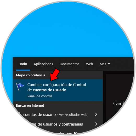 Para editar este permiso en el buscador ingresamos "cuentas de usuario" y damos clic en "Cambiar configuración de Control de cuentas de usuario":