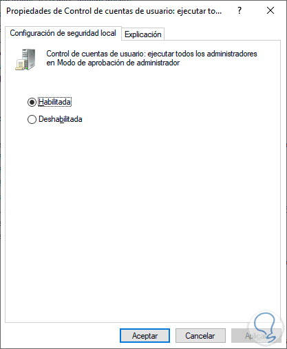 Como su nombre lo indica esta se encarga de administrar la configuración para controlar el comportamiento de las configuraciones de la directiva del Control de cuentas de usuario (UAC) de Windows.