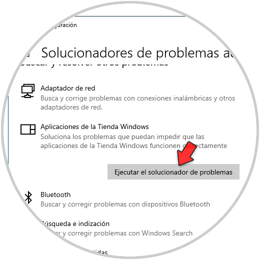 Damos clic en "Aplicaciones de la Tienda de Windows" y luego damos clic en "Ejecutar el solucionador de problemas":