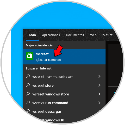 Para borrar esta cache, en el buscador de Inicio ingresamos "wsreset" y ejecutamos el comando.