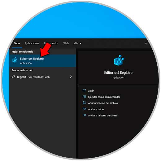 Abre el Editor de registros desde Inicio: