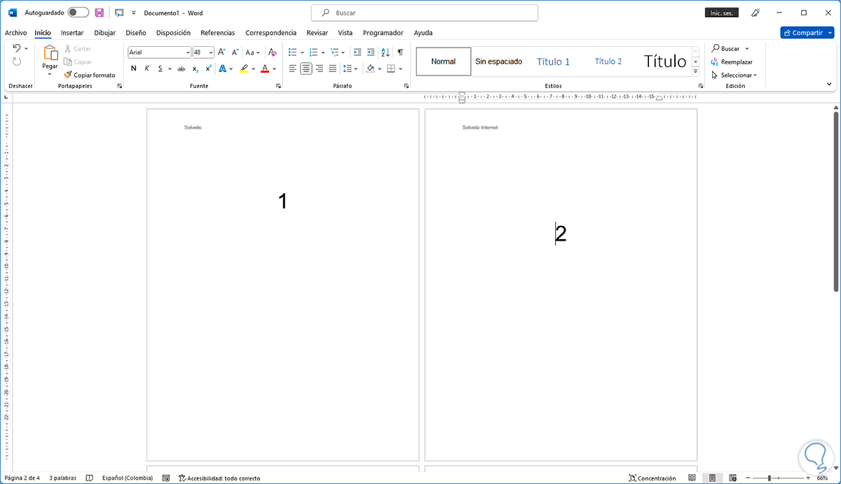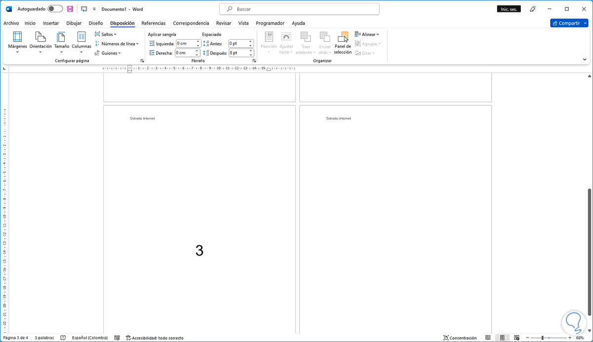 Abrimos Word y validamos las páginas donde irá el encabezado: