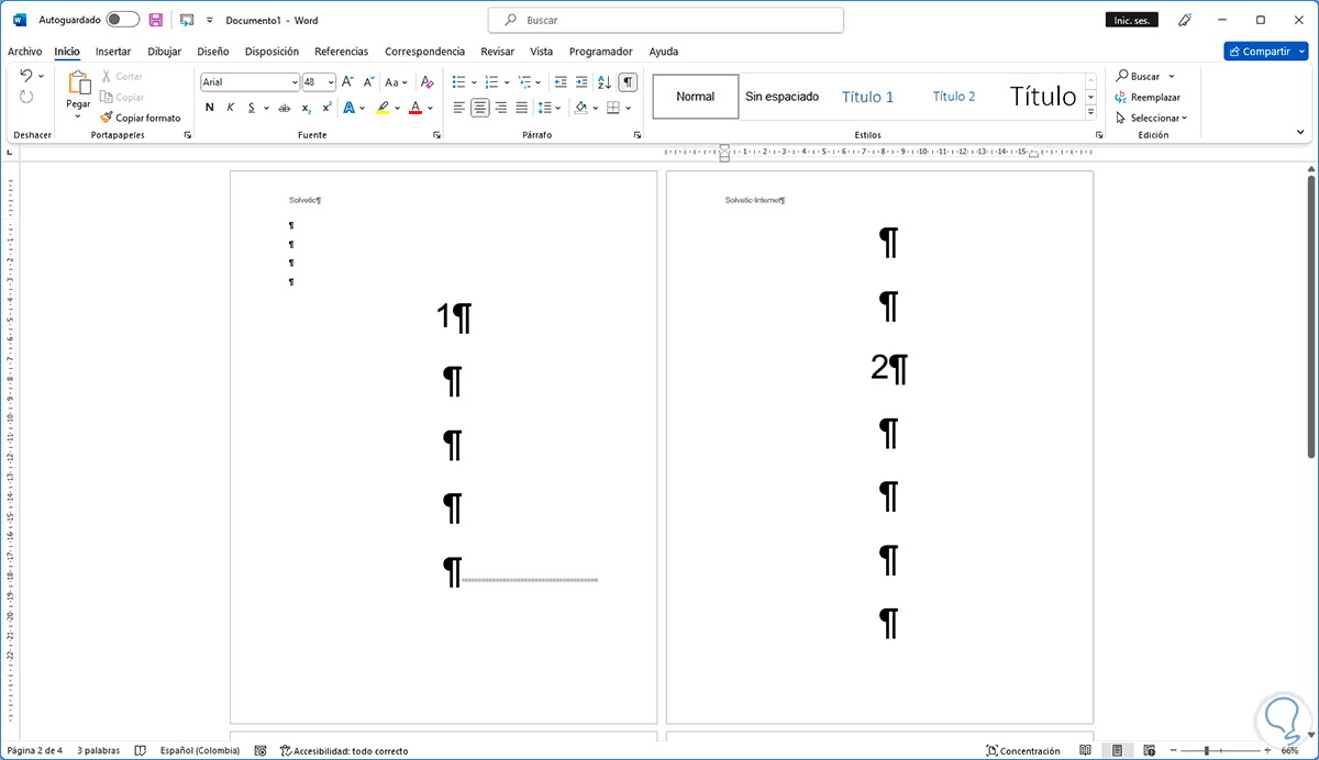En el menú Inicio da clic en "Mostrar todo" si deseas ver las marcas de los saltos de página: