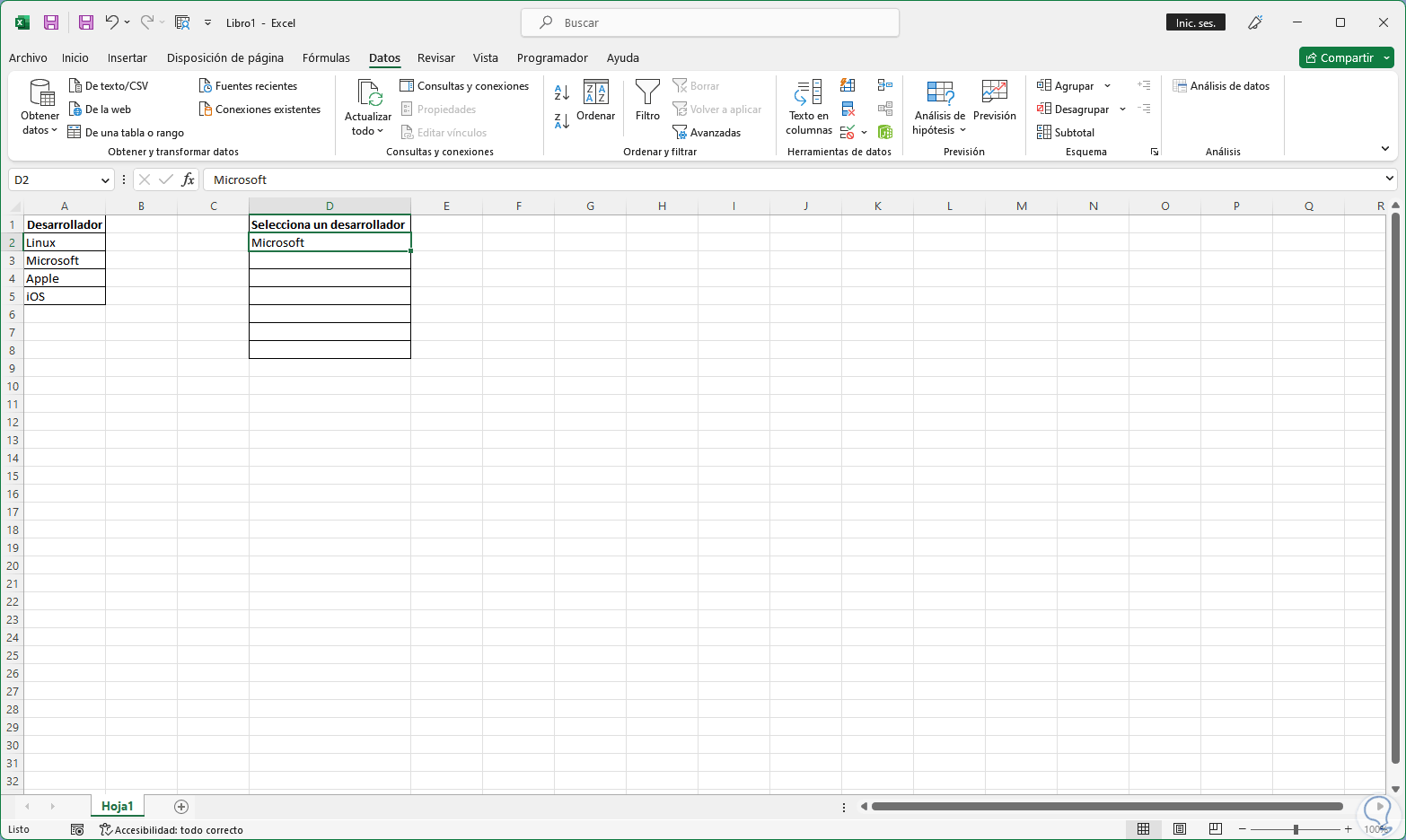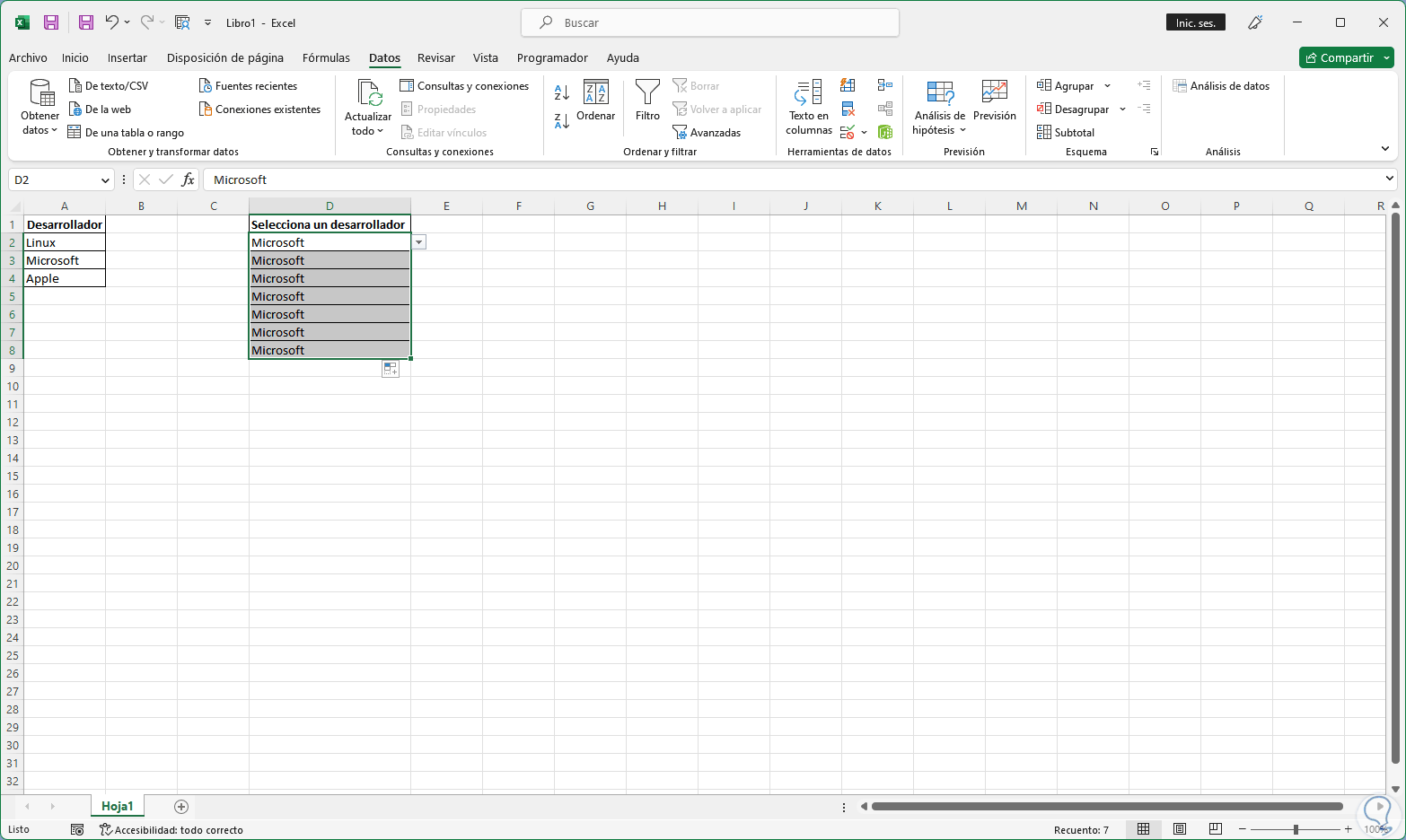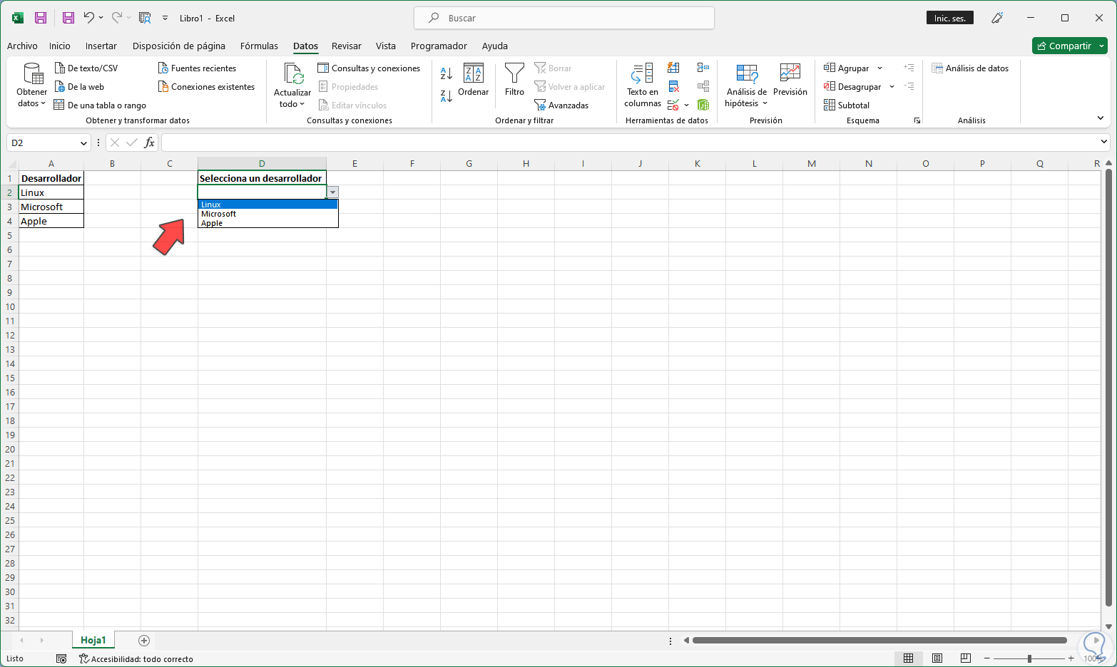 Ahora ese nuevo dato estará disponible en la lista desplegable: