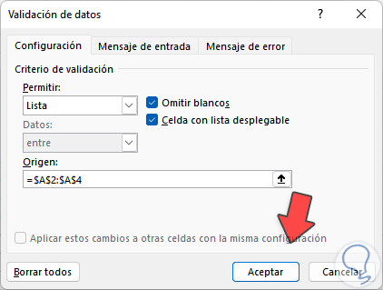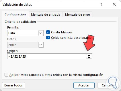 Podemos ver el rango seleccionado. Aplica los cambios.