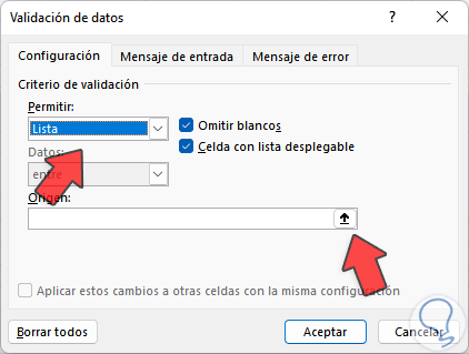 Abre "Validación de datos", es posible ingresar un mensaje de entrada para que el usuario se oriente: