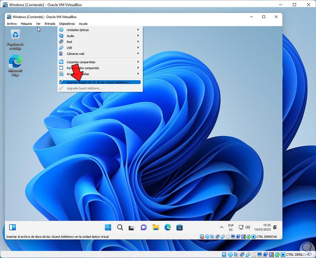 Para añadir las Guest Additions, iremos al menú "Dispositivos - Insertar imagen de CD de las <<Guest Additions>>":