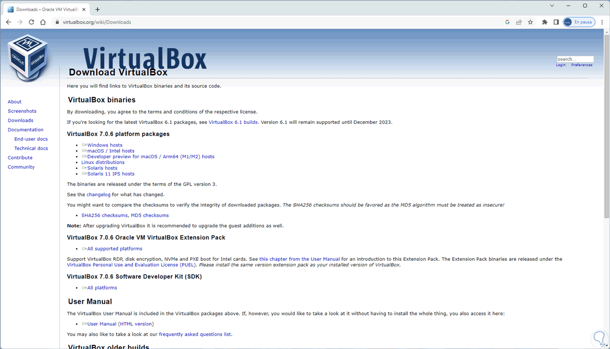 La virtualización es una de las técnicas más útiles que como usuarios podemos administrar ya que nos quita el riesgo de que un PC físico pueda sufrir perdida de datos, fallos generales, presencia de virus y nos entrega la posibilidad de conocer un sistema operativo nuevo o aplicaciones para determinar el impacto de estas en un entorno real. Así como usuarios estaremos un paso adelante para determinar si un sistema es viable o no lo es, en el tema de la virtualización una de las mejores aplicaciones a usar es VirtualBox la cual puede ser descargada de manera gratuita en el siguiente enlace: