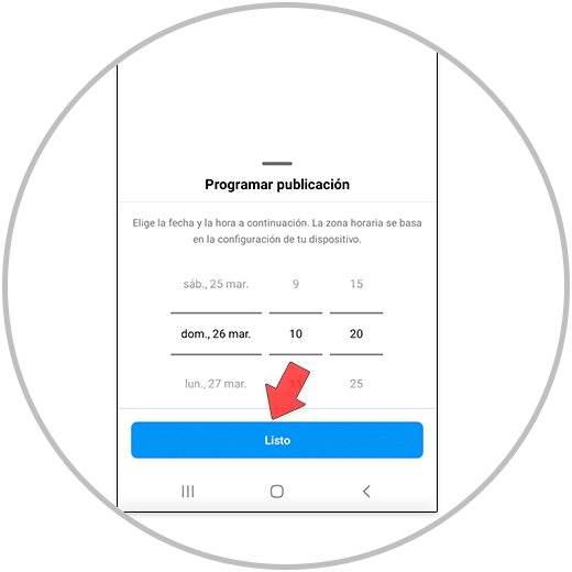 Ahora, selecciona la nueva fecha y hora de publicación y pulsa “Listo”.