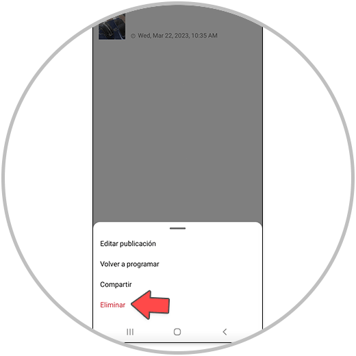 Lo primero será acceder al contenido programado como te hemos explicado en el apartado del capítulo anterior. Una vez hecho, pulsa en el icono de 3 puntos horizontales junto al Reel que quieres eliminar.