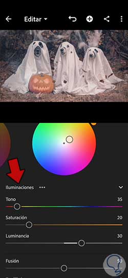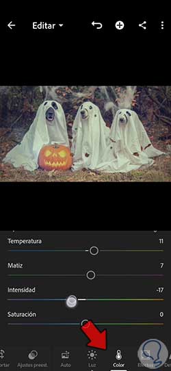 Continuamos nuestra edición de efecto granulado yendo al apartado de color que también veremos en la parte inferior.