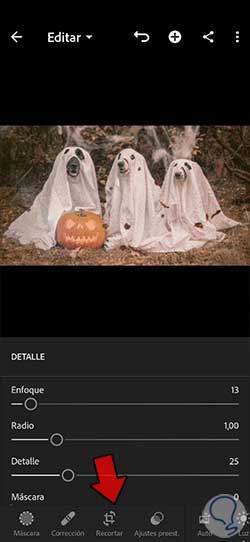 Vamos a terminar la edición de nuestra fotografía realizando un reajuste de encuadre y que tendrás que tener en cuenta según la plataforma donde quieras después ubicar tu fotografía. Para ello pulsaremos en la opción de “Recortar”: