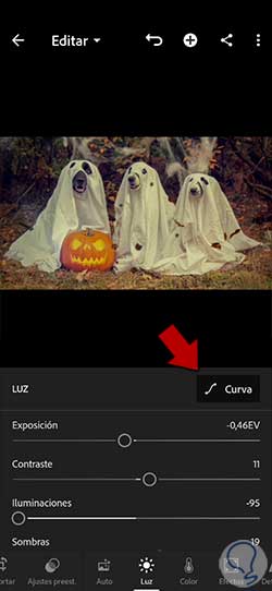 Vamos a continuar editando la iluminación de nuestra fotografía de una forma más segmentada usando la opción de “Curva”.