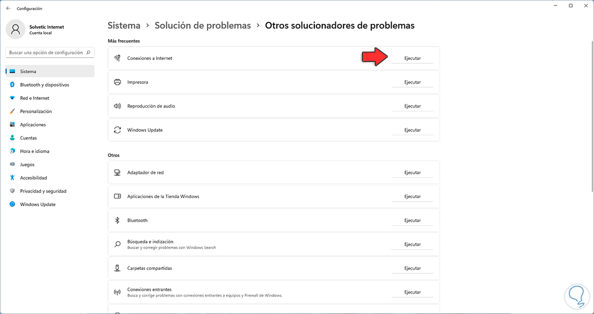En "Conexiones a Internet" da clic en "Ejecutar":