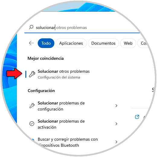 Para su uso en el buscador ingresa "solucionar" y luego da clic en "Solucionar otros problemas":