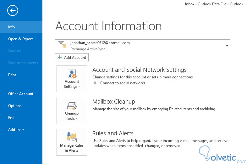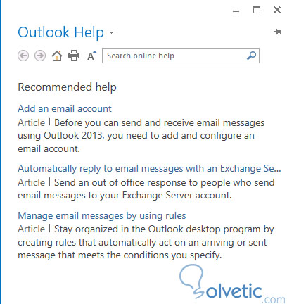También contamos con la vista de ayuda del programa, aquí tenemos una documentación extensiva sobre los procesos internos de Outlook y también posibles soluciones a problemas, por lo que tal vez la utilicemos más de una vez cuando estemos trabajando en este manejador de correo.