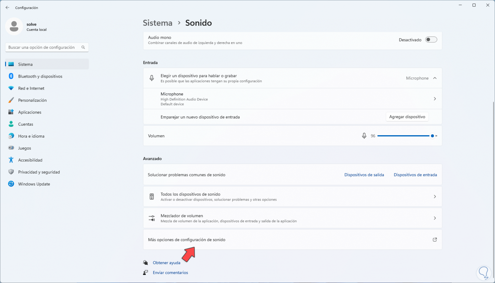 Damos clic en "Mas opciones de configuración de sonido" ubicado en la parte inferior: