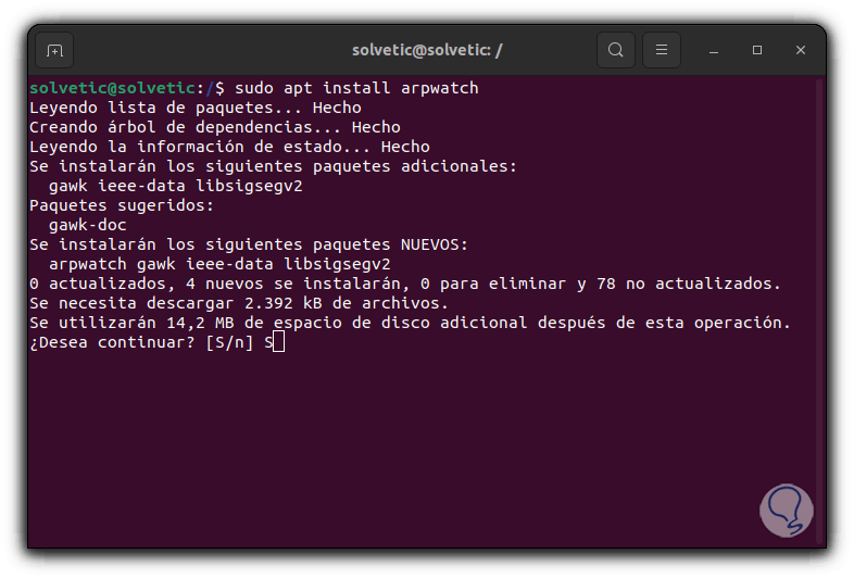 Vamos a instalar la utilidad, para ello abrimos la terminal e instalamos Arpwatch: