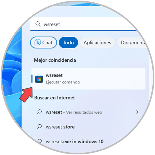 Para realizarlo en el buscador ingresamos "wsreset" y ejecutamos el comando: