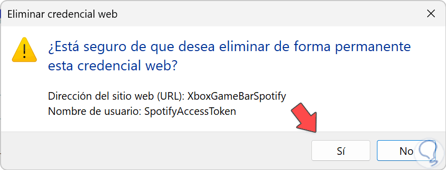 Confirmamos el aviso que aparece para eliminar de forma permanente el credencial guardado.