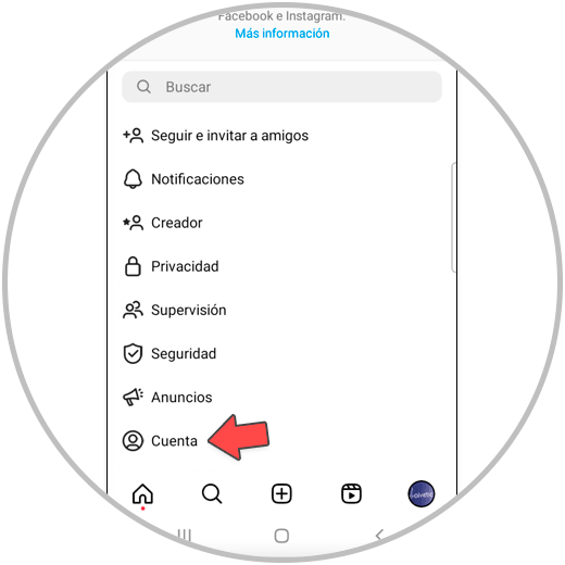 En esta pantalla, pulsamos sobre la opción "Cuenta".
