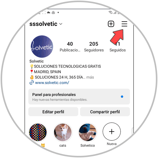 Para esto, lo primero que haremos será desvincular la cuenta de Instagram de la de Facebook, pulsando en el icono de 3 líneas horizontales en nuestro perfil.