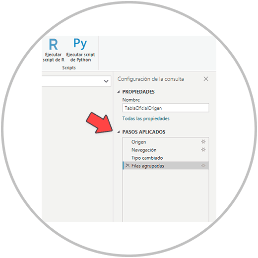Si queremos deshacer una agrupación, usaremos "la configuración de la consulta". Una visualización que ofrece Power Bi para poder ver y controlar mejor los cambios.