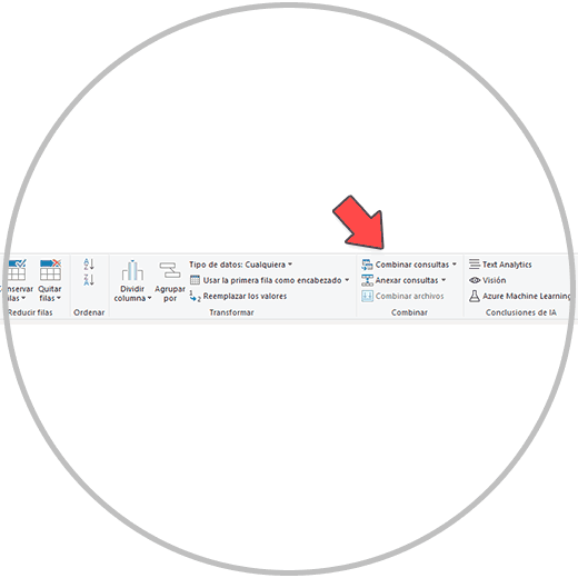 Para combinar consultas, nos vamos al menú del editor de Power Query, y entramos en la opción de "Combinar consultas".
