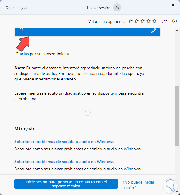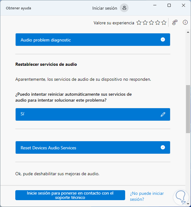 Esperamos que el proceso llegue a su final. Vemos cuál fue la corrección aplicada y validamos que el audio funcione en el equipo.