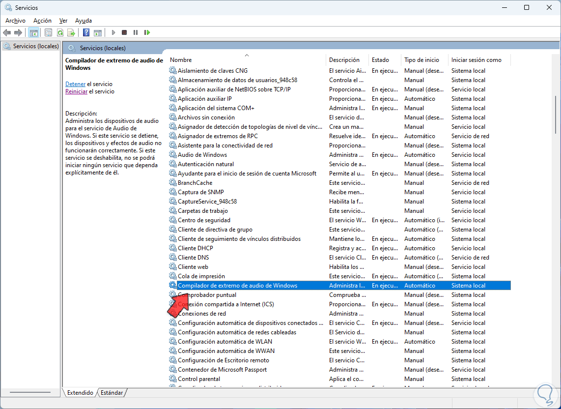 2 Reparar Audio Windows 11 con Servicios