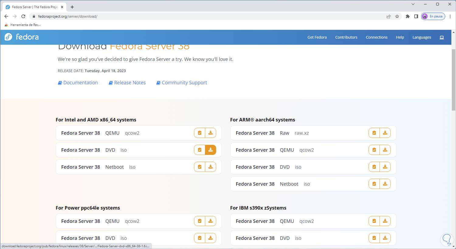 Vamos a la URL de Fedora: Damos clic en “Download”: