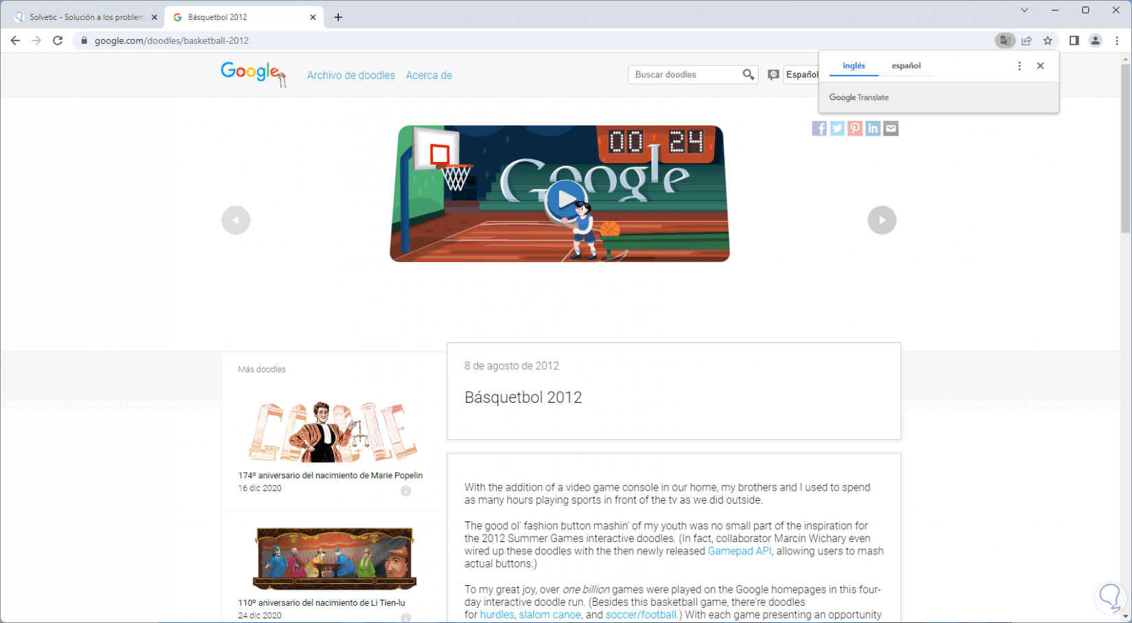 Si eres fan de algún equipo de la NBA el juego Básquet es el ideal para ti, si deseas jugar este juego oculto ve a al siguiente enlace (Doodle):