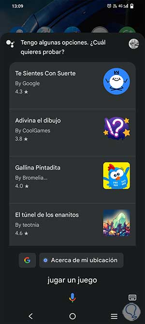 Decimos “jugar un juego” para que el asistente lance opciones de juegos:
