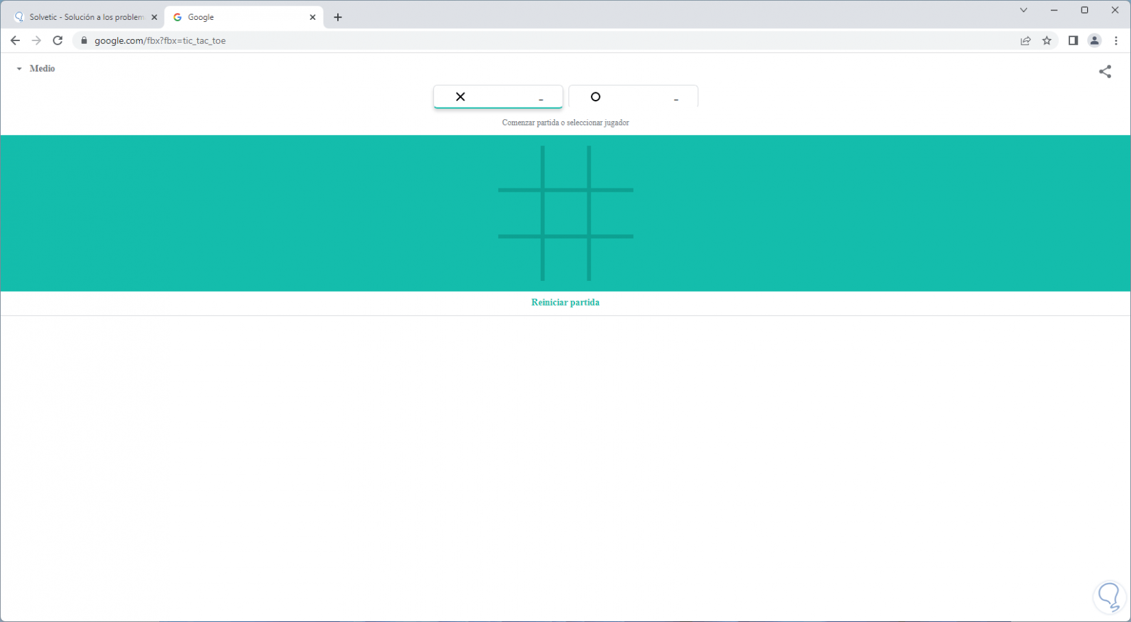 Allí selecciona el signo e inicia la partida hasta que haya un ganador o empate en caso de no lograrse la línea: