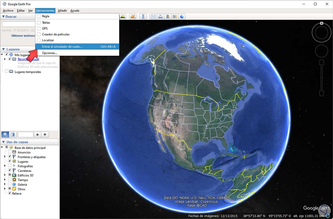 Vamos al menú “Herramientas – Entrar al simulador de vuelo”: