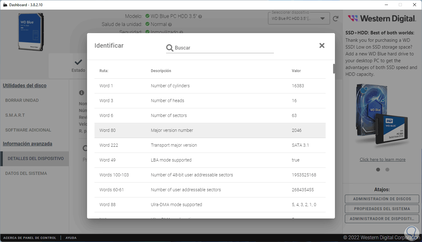 En nuestro caso usaremos la app de Western Digital, para esto abrimos la aplicación llamada Dashboard: