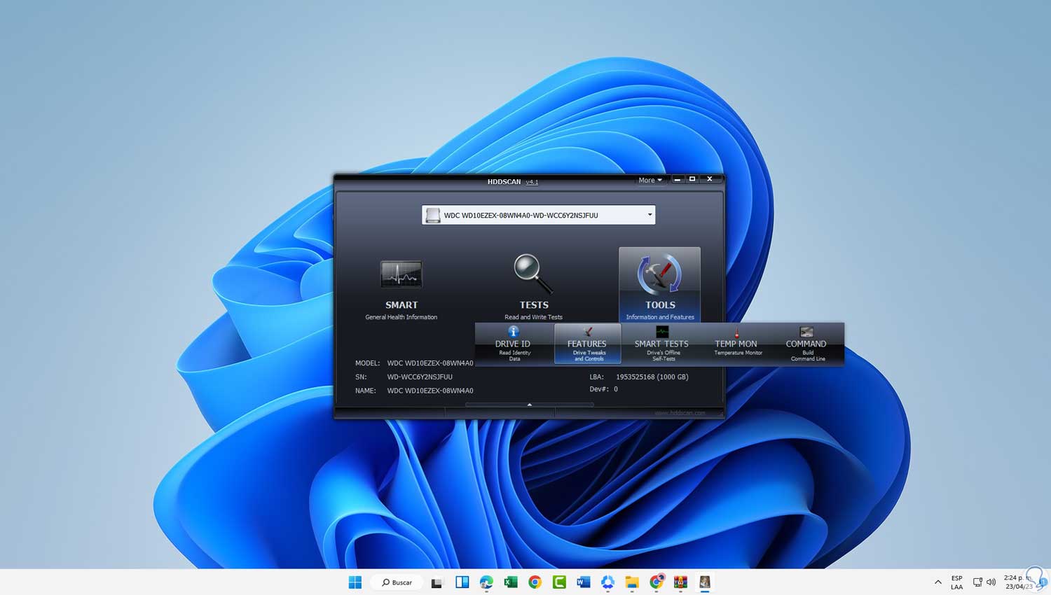 En la parte superior veremos los aspectos de salud y seguridad del disco duro instalado, vamos a la pestaña “Herramientas” para tener acceso a algunos detalles extras: