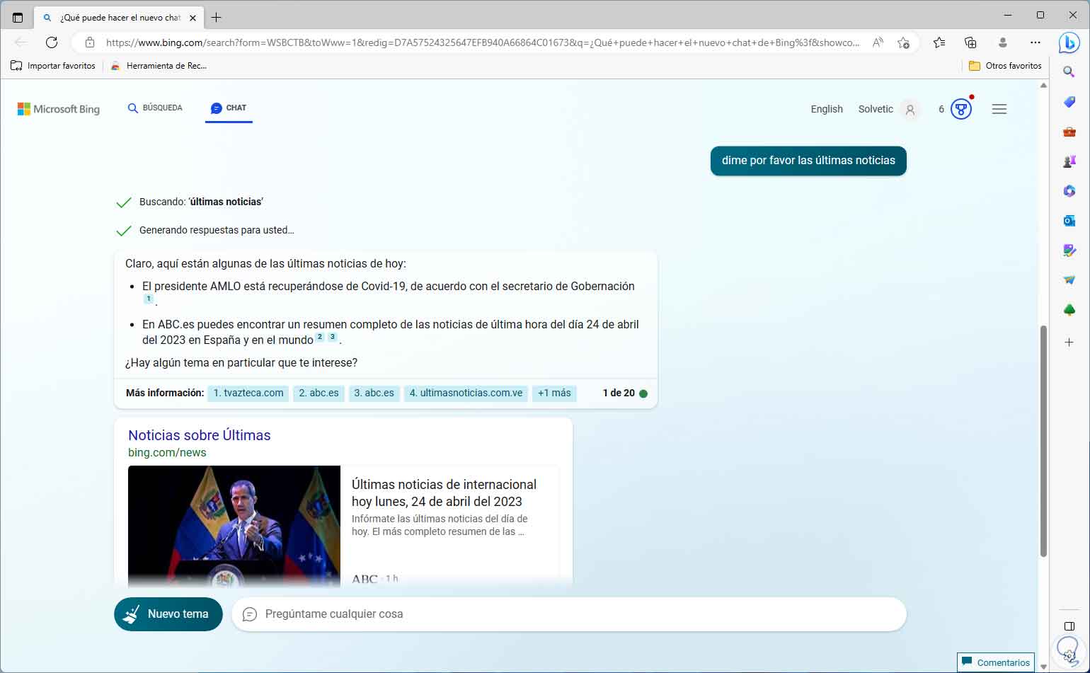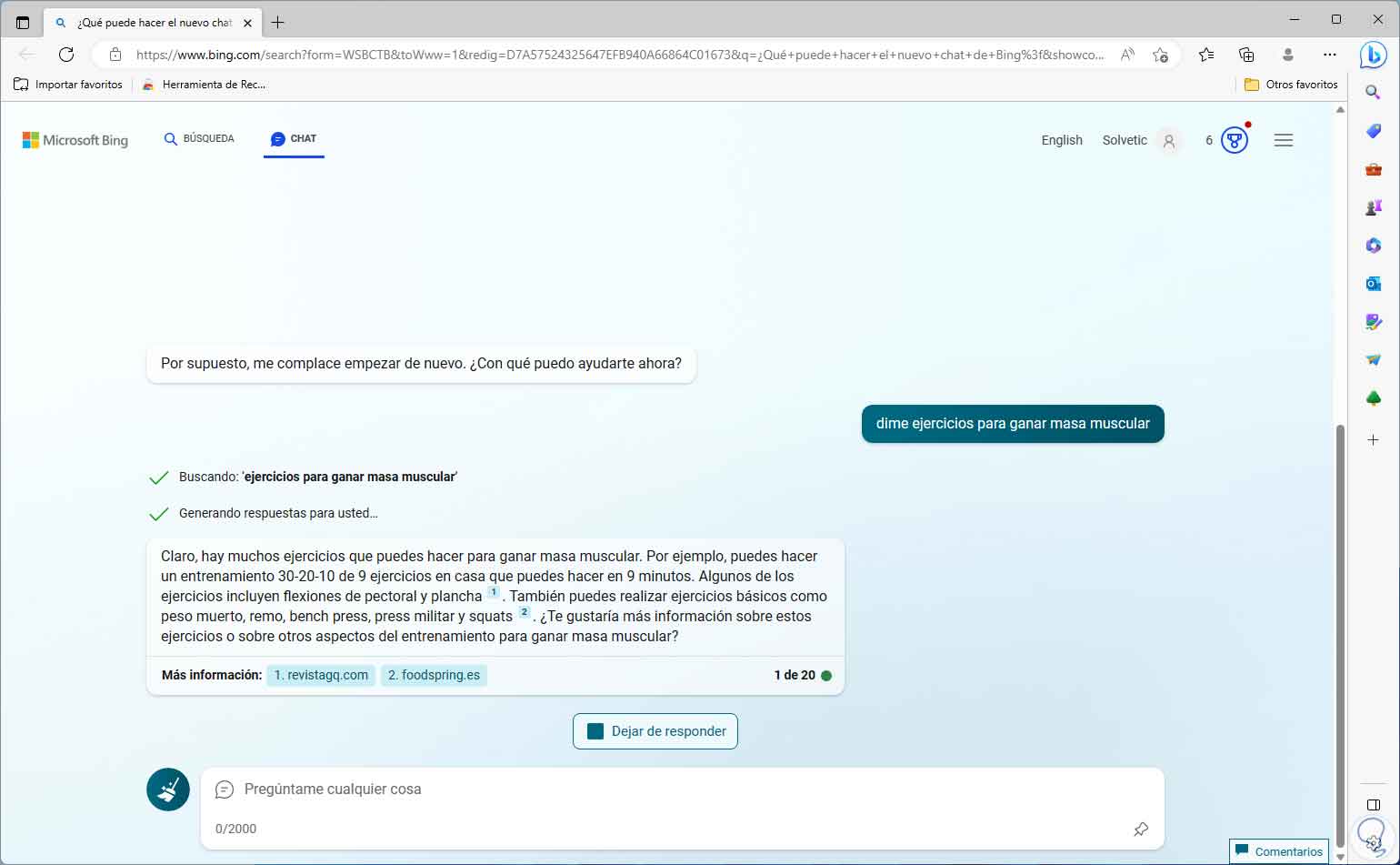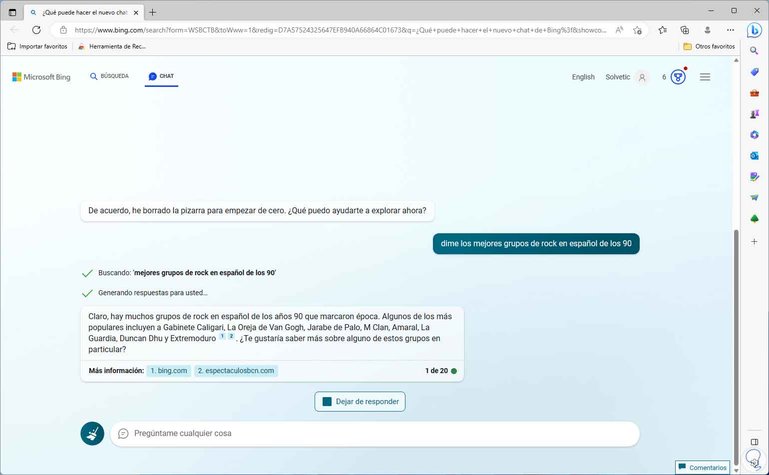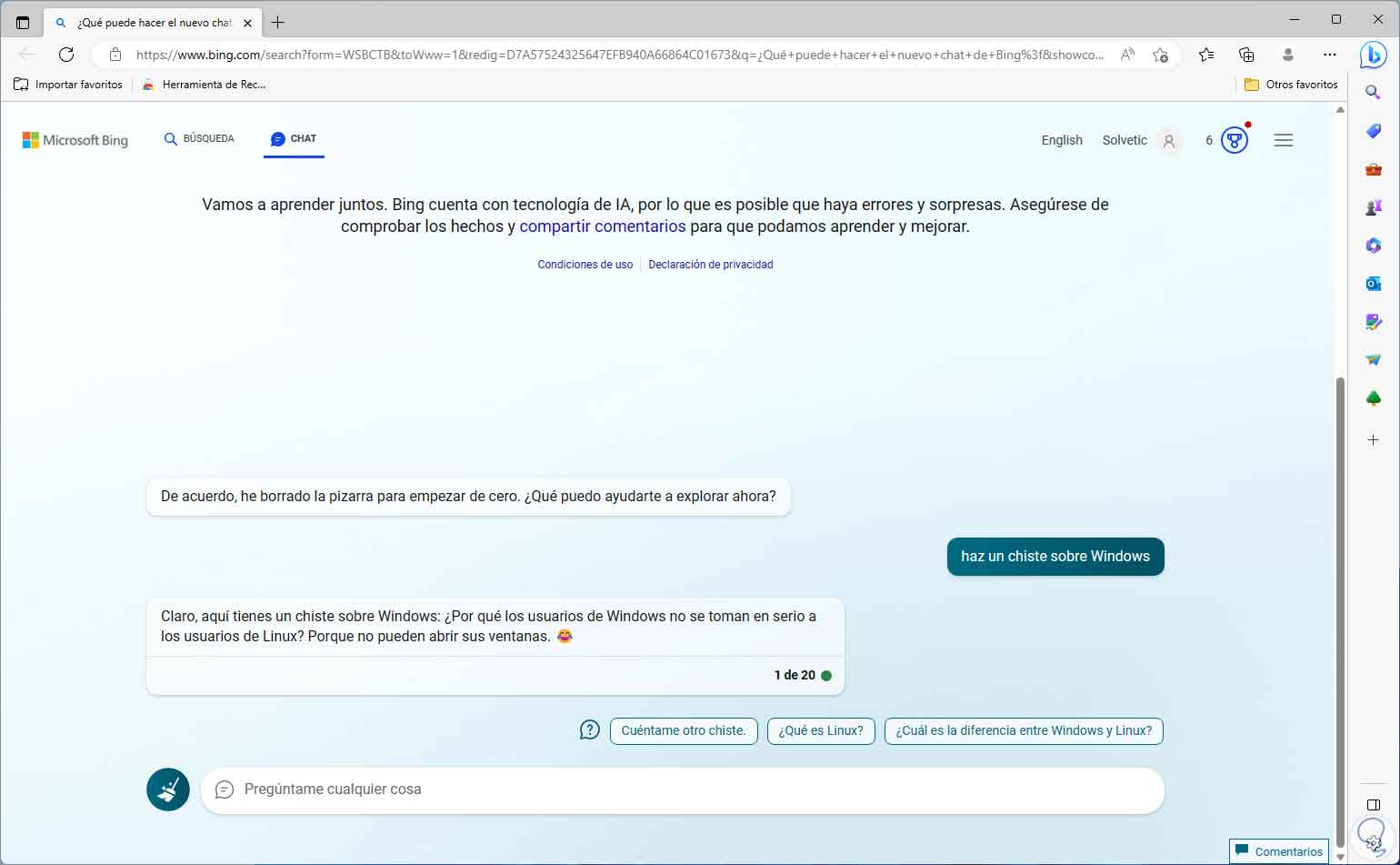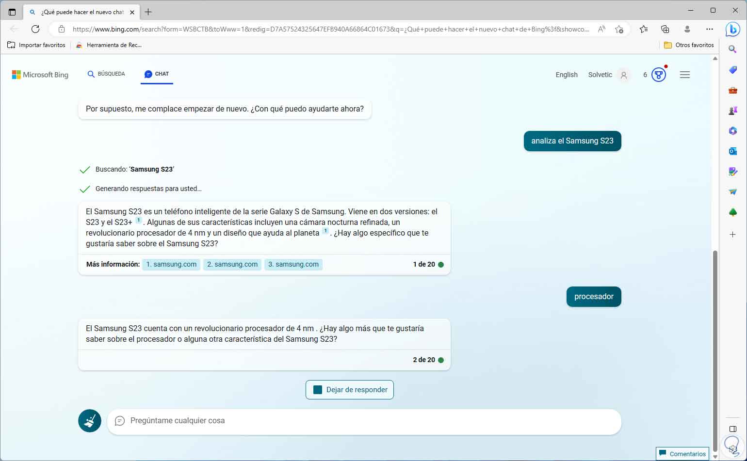 Todo esto se logra gracias a que Bing recurre a todas las fuentes en la web para los resultados, esto se hace a través de servidores potentes y mecanismos de lógica para tener la respuesta adecuada y literalmente establecer una charla con el chat. Solvetic enseñará diversas formas cómo Bing Chat ayudará de ahora en adelante a las nuevas tareas que realicemos en Windows.